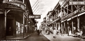 ‘Veel vertier in Port Said was er niet. De arabische wijk trok hen niet, de Europese wijk gaf af en toe een vleugje van thuis, al bleef het onmiskenbaar een oosterse locatie. In de Rue du Commerce gingen ze de winkel van Simon Arzt binnen, het fameuze warenhuis waar reizigers op weg naar India, Australië of Afrika alles wat ze nodig hadden konden vinden.’