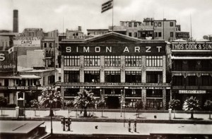De Joodse sigarettenfabrikant en handelaar Simon Arzt (1814-1910) was in 1869, het jaar dat het Suezkanaal werd geopend, als Turkse tabaksteler naar Port Said gekomen en specialiseerde zich niet alleen in tabaksproducten, maar ook koloniale goederen. Zo werden kant uit Malta en China, zilver uit Damascus, Egyptisch borduurwerk, en ook reiskleding en Indiase tropenhelmen tegen vaste prijzen aangeboden.