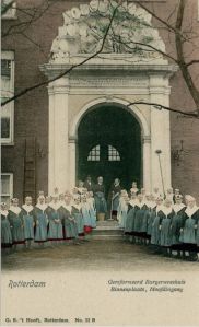Mijn vader overleed toen ik twee was en mijn moeder hertrouwde toen ik vier was, in 1891. We zijn naar Rotterdam verhuisd kort nadat mijn pleegvader zes weken in het Buitengasthuis heeft gelegen, in Amsterdam, waar we toen woonden. Dat moet 1899 zijn geweest. Nou, in Rotterdam overleed mijn moe in 1901, maar het jaar daarvoor ging ik al naar het Burgerweeshuis aan de Goudschewagenstraat. Ik was dertien.